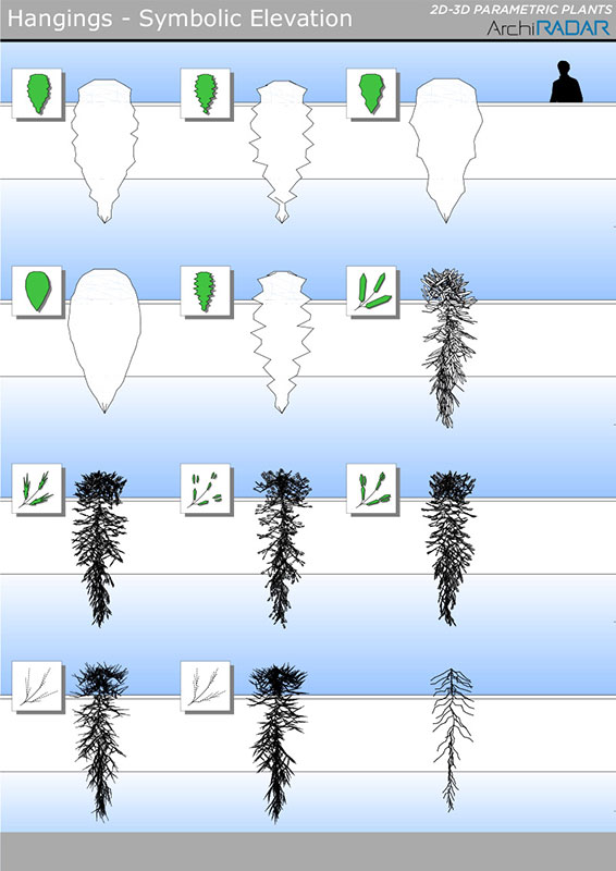 The objects are made with a low polygon quantity, they have a real growing factor according to the size and a corresponding symbolic view in elevation.