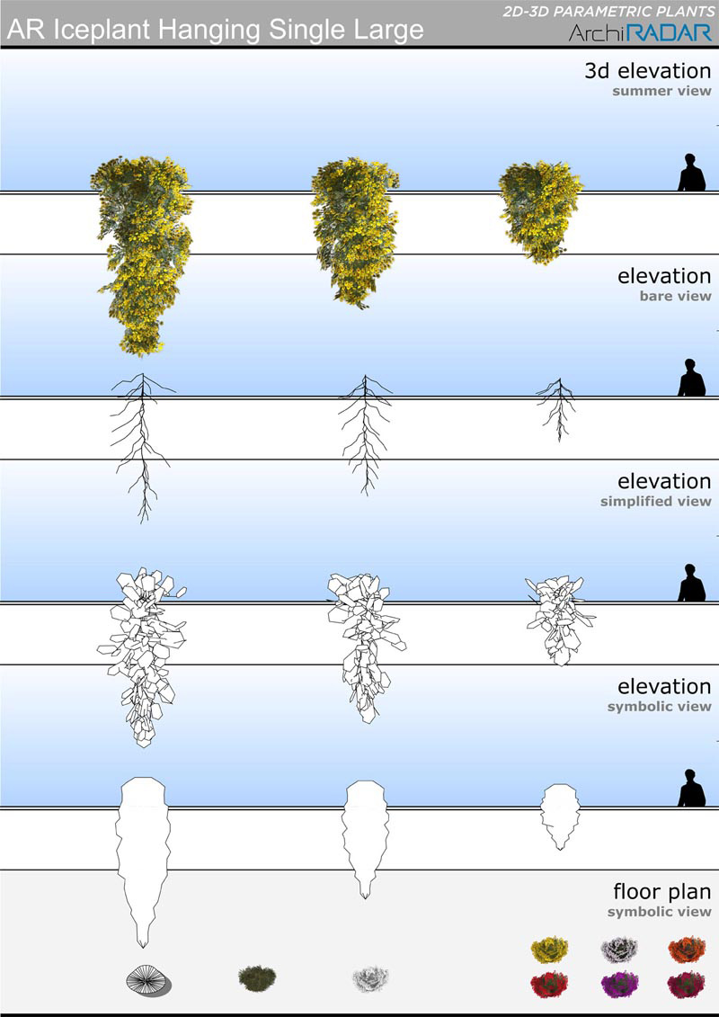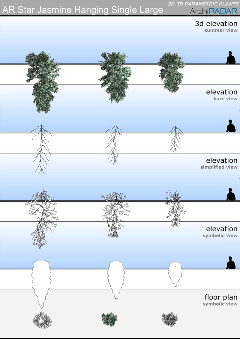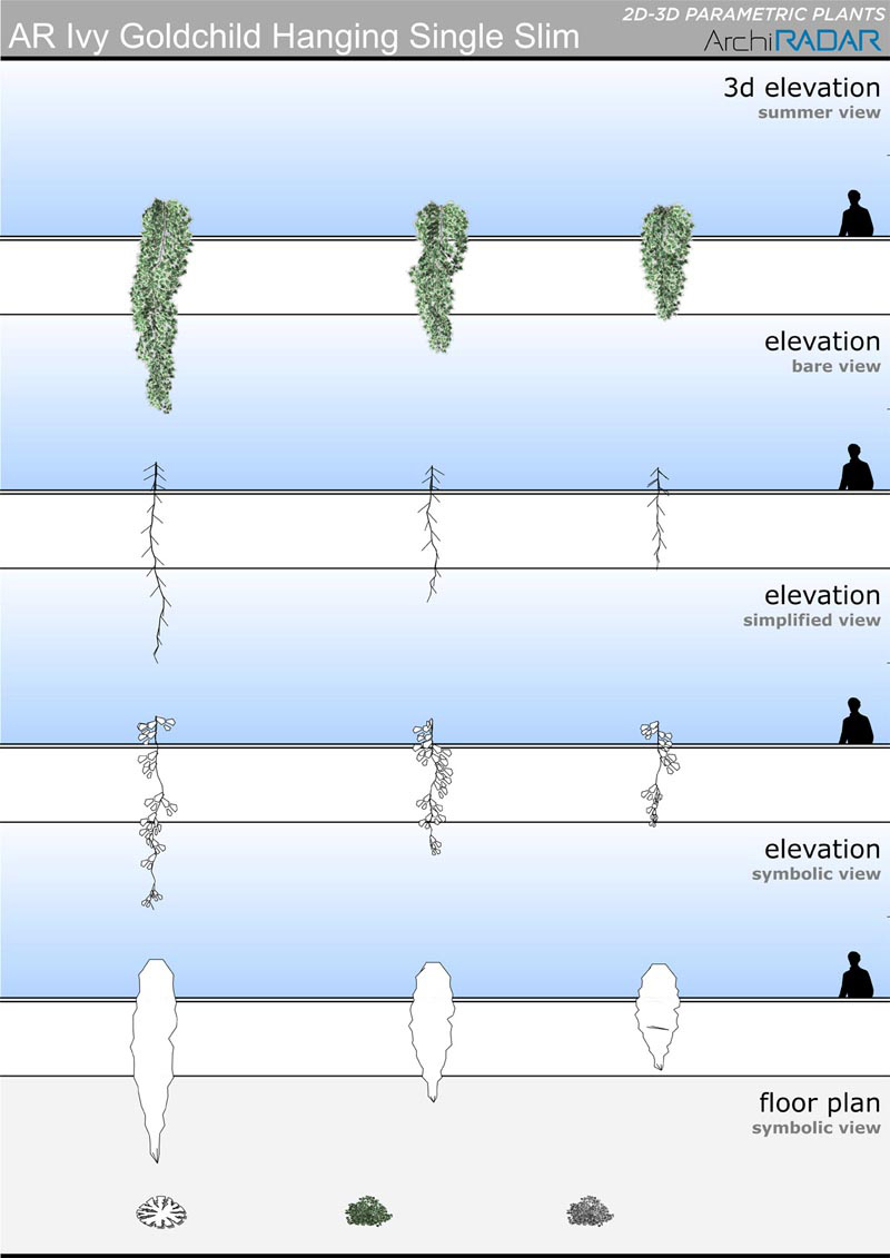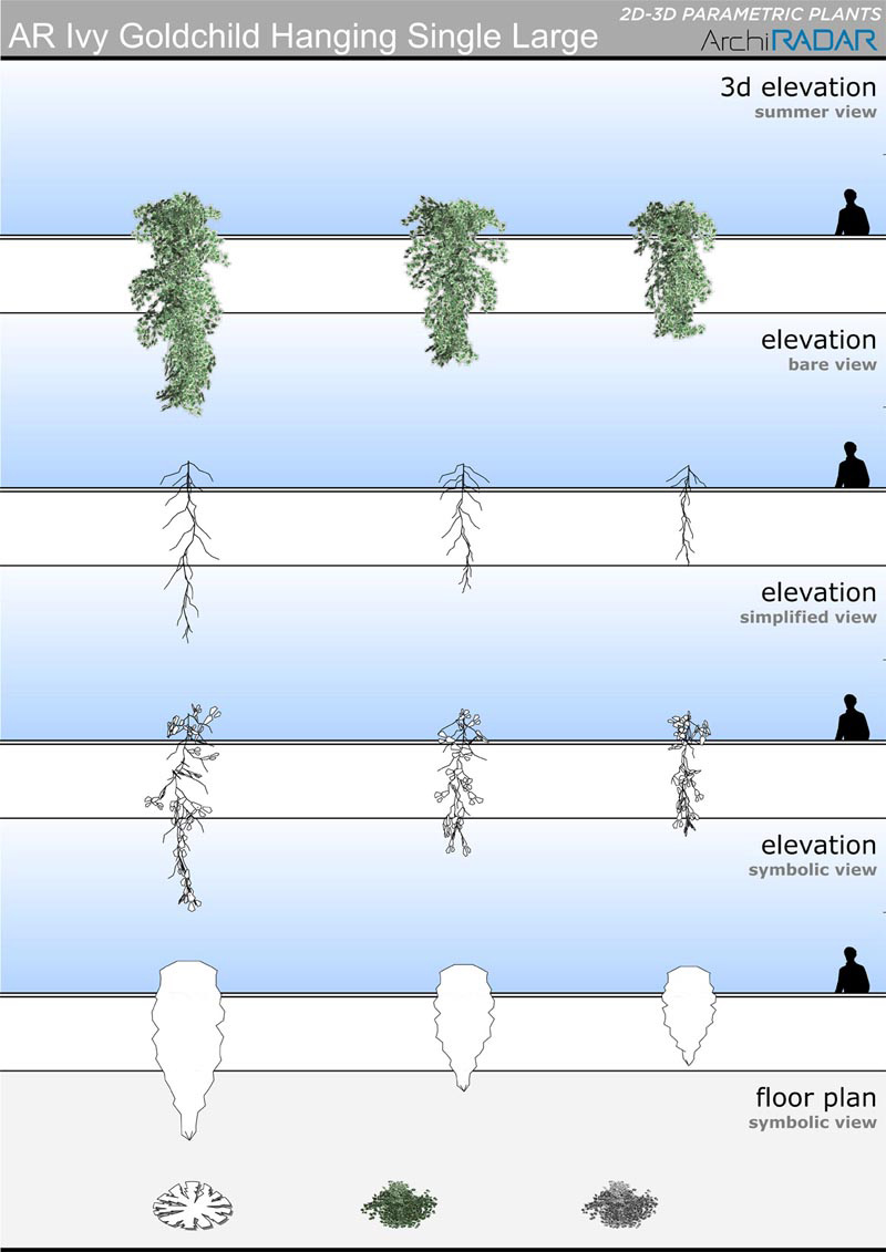 The objects are made with a low polygon quantity, they have a real growing factor according to the size and a corresponding symbolic view in elevation. Optimized for BIMX.