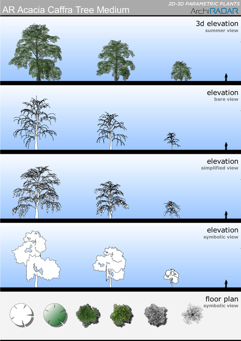 Option available:- Real growing factor- Symbolic view in elevation - 2d symbol shadow- 2d realistic symbol- 3d detail level- Wind option in movies- Season (no evergreen)