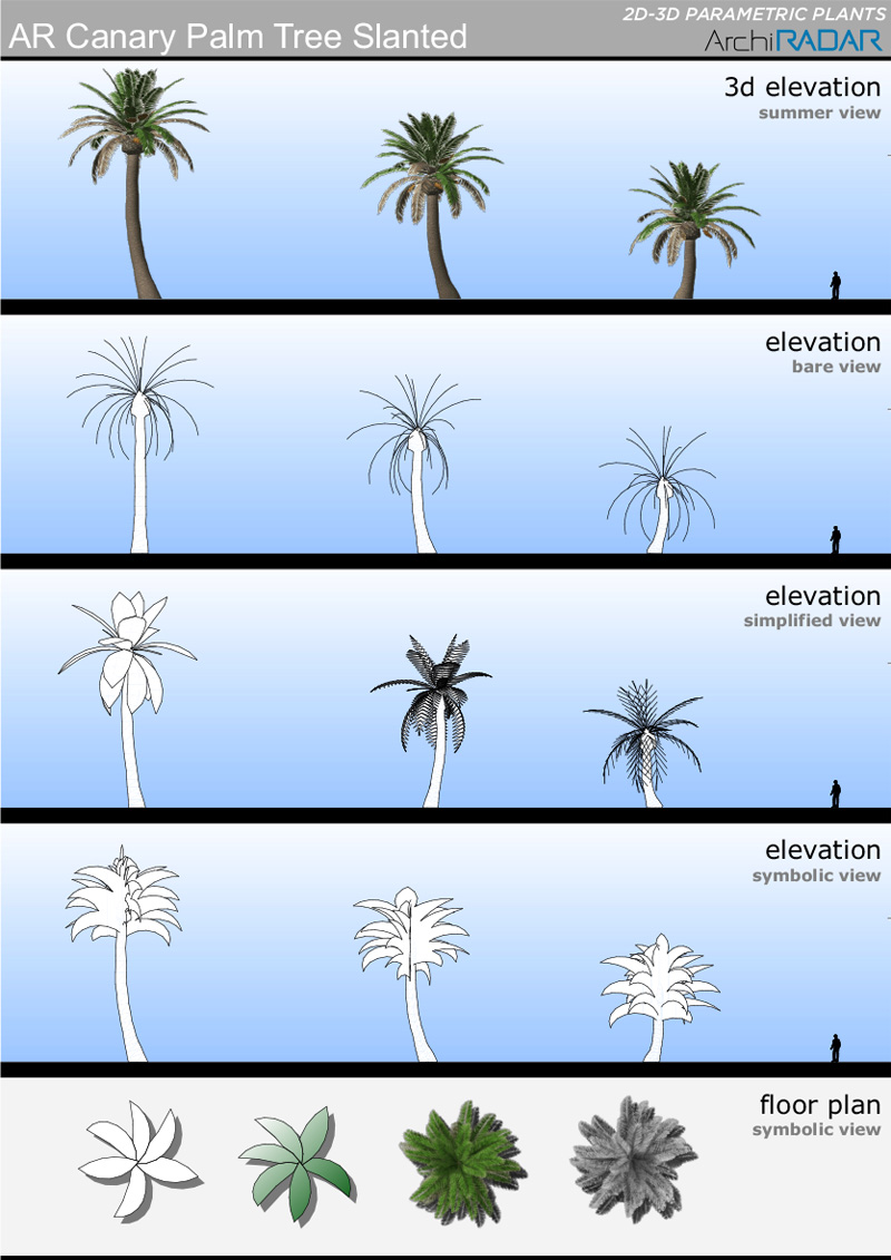 The objects are made with a low polygon quantity, they have a real growing factor according to the size and a corresponding symbolic view in elevation. Optimized for BIMX.