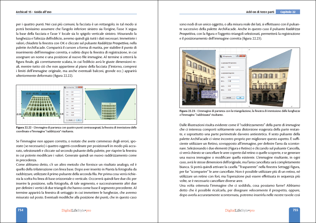 In questa edizione abbiamo voluto inserire molti tutorial e suggerimenti utili per il lavoro quotidiano del progettista, con esempi pratici su come realizzare i disegni comparativi (gialli/rossi), su come lucidare un estratto cartografico, realizzare un inserimento fotografico del modello e altro ancora. Adesso non ci sono più scuse per imparare ad usare ArchiCAD: all'interno del manuale troverete tutto ciò che avrete bisogno di sapere spiegato in modo semplice e chiaro e corredato da immagini di esempio. Questo non è un semplice manuale, ma è IL Manuale per apprendere l'uso di ArchiCAD o anche solo per approfondire le novità della versione 15.